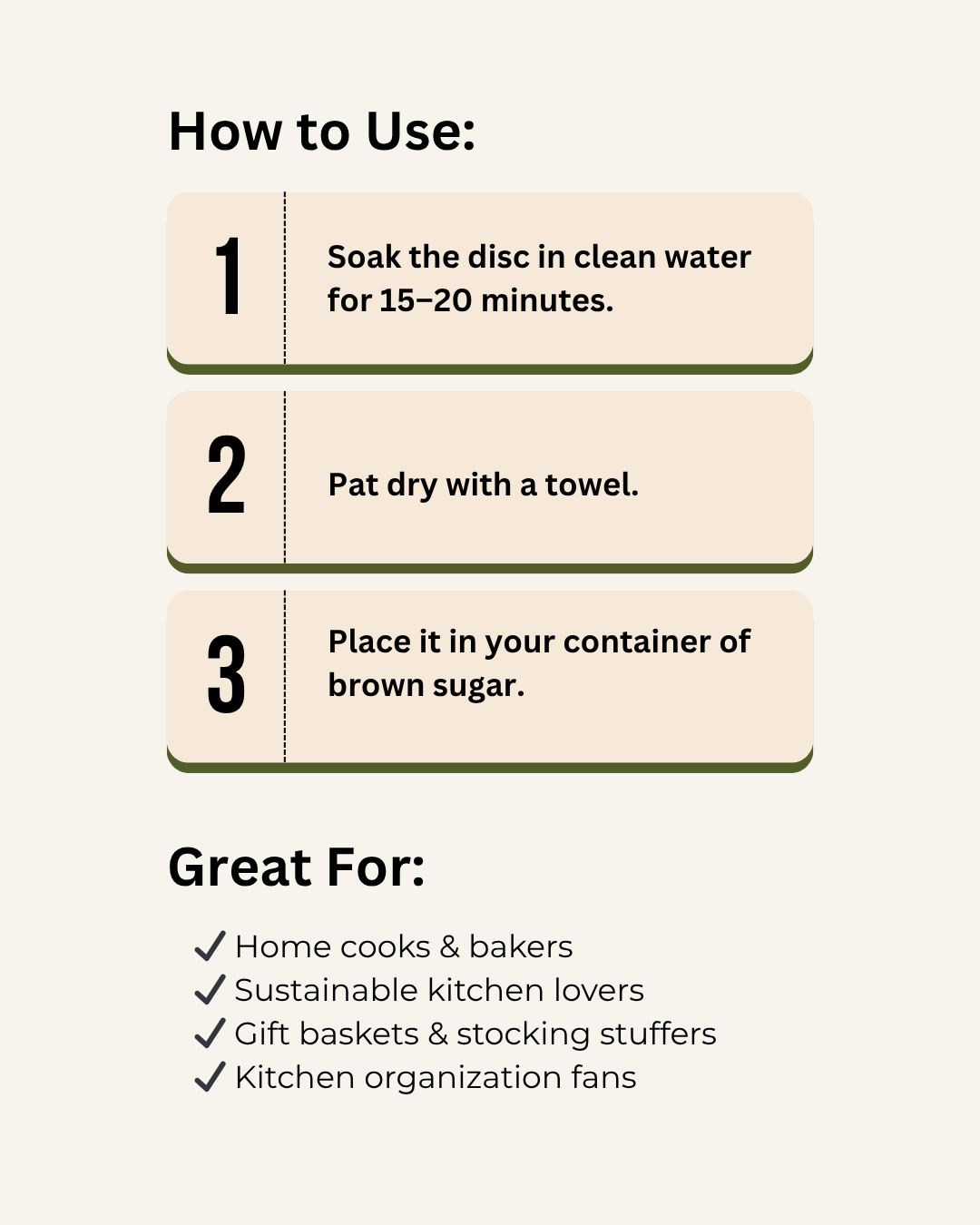 Each piece is crafted from 100% natural terracotta clay and stamped with a sprout design that symbolizes freshness and growth. Just soak the disc in water for 15–20 minutes, pat it dry, and place it in your container. That’s it — soft sugar for months!